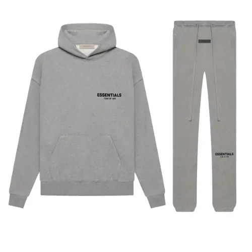 Descubre el Chandal Essentials Original más icónico y versátil de la temporada: el Fear Of God Chandal Essentials Gris. Este conjunto premium está compuesto por una sudadera con capucha y pantalón deportivo a juego, en un elegante tono gris que transmite estilo minimalista e informal perfecto para el día a día en España.